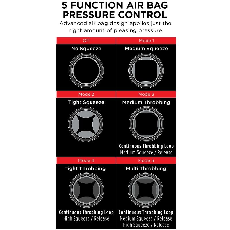 - 5-Function Airbag Pressure Control: Advanced airbag design applies just the right amount of comfortable pressure. Press to activate and hold for 3 seconds to release.
