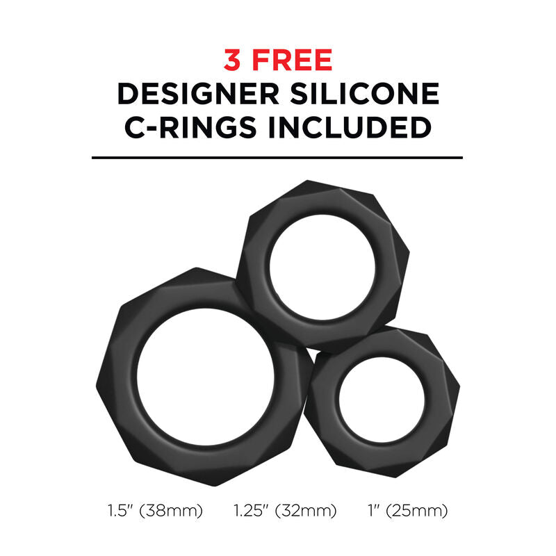 The internal thrusting mechanism is completely hidden inside and features 2 metal “grip” rings around the sleeve that grip and squeeze the shaft. Each ring is lined with a row of pleasure pearls that roll up and down the shaft, while the super soft TPR sleeve hugs every inch of your penis. The rechargeable motor delivers professional-grade performance with 2 intense speed settings, 3 powerful suction modes, and 5 thrilling vibration patterns that will drive you wild.