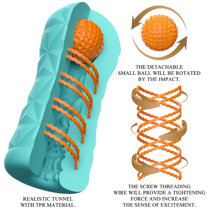 Small tool for giant masturbation fun! This transparent and reusable masturbator has a rotating spiral and a stimulation ball on the side, the rotating spiral makes the masturbator rotate during penetration and the ball on the top can stimulate the right spot and give you a new sensation. The sleeve has a stimulating and exciting texture inside that intensely and dynamically massages the penis during manual work. You can use this elegant skin-friendly masturbator again and again. Very easy to use and pure pleasure!