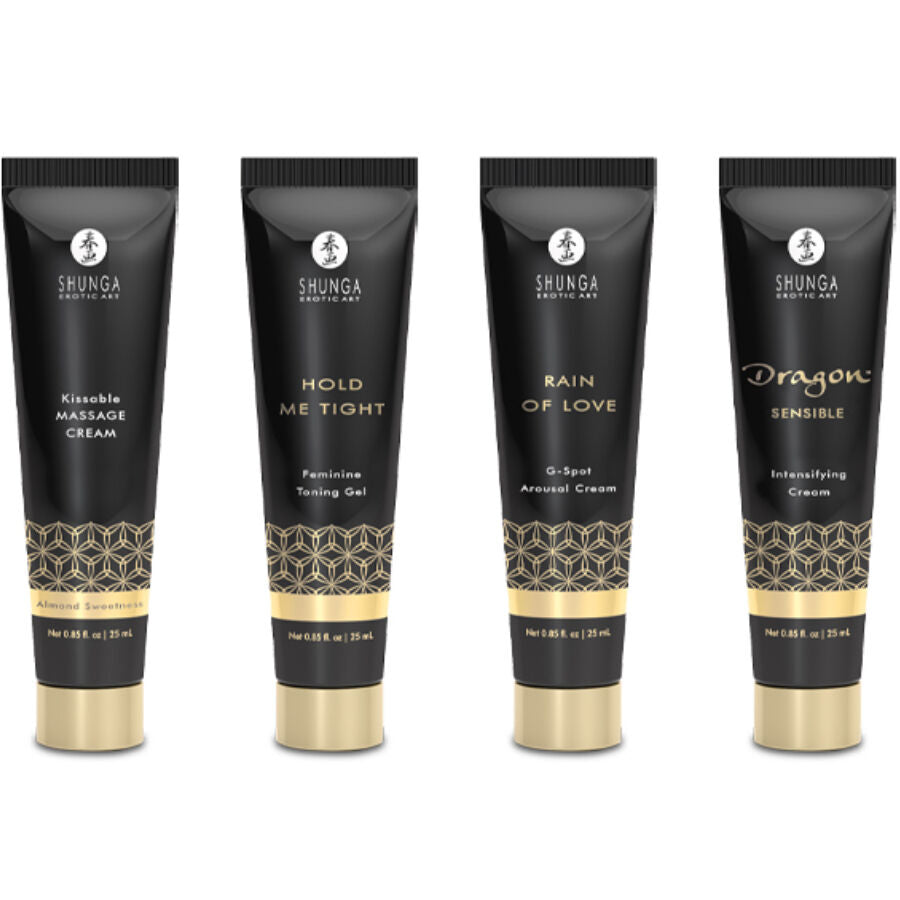 25 days of pleasure: each gift set will reveal a treasure from our range, carefully selected to awaken your senses and enrich your intimate moments. From delicate massage oils to captivating lubricants, from accessories to daring creations, each product embodies the essence of SHUNGA : a perfect blend of luxury, sensuality, and passion. Let yourself be carried away by the days and let each surprise bring you a little closer to the pinnacle of desire. Let's celebrate these 25 years of pleasure and love together, in intimacy and togetherness. Because love is an art...